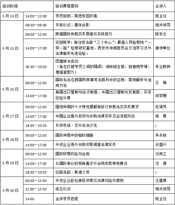 培训地点:西北政法大学雁塔校区(西安市长安南路300号)。