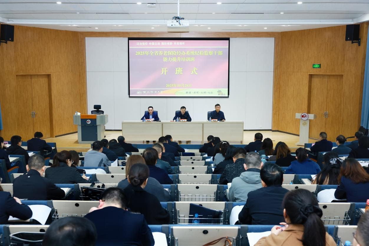 10月28日上午,由陕西省社会保障局主办、西北政法大学承办的“2025年全省养老保险经办系统纪检监察干部能力提升培训班”在我校开班,省社保局相关领导,我校党委副书记郭武军出席开班式。