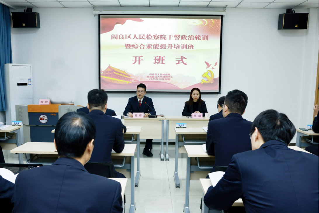 10 月 30 日上午,阎良区人民检察院干警政治轮训暨综合素能提升培训班在我校开班。阎良区人民检察院党组书记、检察长葛峰,我校培训中心副主任、律师学院副院长、基地办公室副主任蔡珺出席开班式。