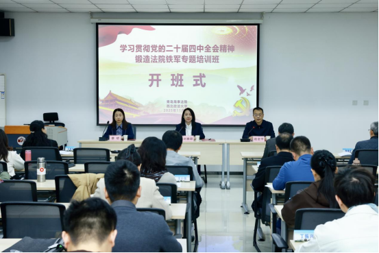 11月4日上午,青岛海事法院学习贯彻党的二十届四中全会精神 锻造法院铁军专题培训班在我校开班。青岛海事法院党组成员、副院长刘春颖,我校党委委员、副校长赵全宇出席开班式。仪式由我校培训中心副主任、律师学院副院长、基地办公室副主任蔡珺主持。
