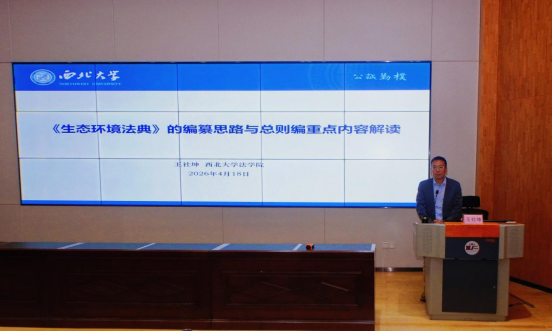 开班式结束后,西北大学法学院教授、副院长、环境资源治理研究中心主任王社坤为学员作《<生态环境法典>的编纂思路与总则编重点内容解读》专题报告。