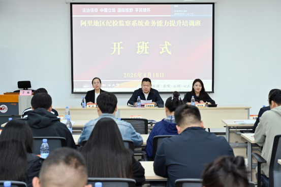 4月18日上午,阿里地区纪检监察系统业务能力提升培训班在我校开班。阿里地区纪委副书记、监委副主任、三级高级监察官扎西顿珠,我校继续教育学院院长、培训中心主任、律师学院院长赵彩如出席开班式。